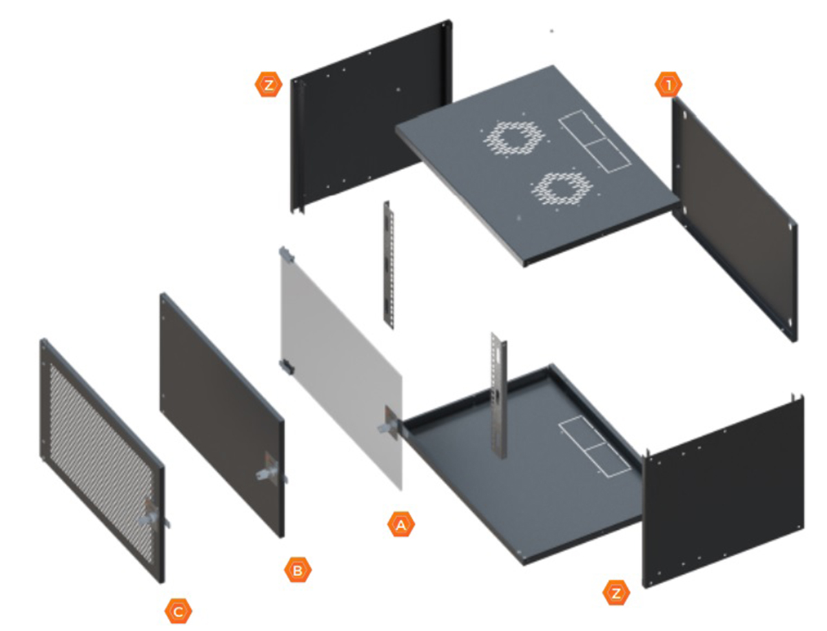 SOHO rack cabinets are designed with 2 fan slots to control inner ventilation with a brush slit for cable entry at the top and bottom covers of cabinets.